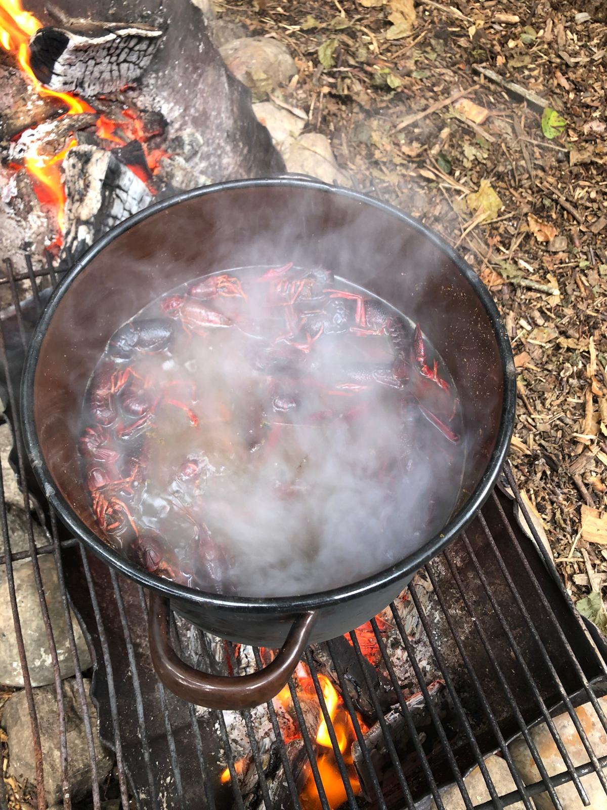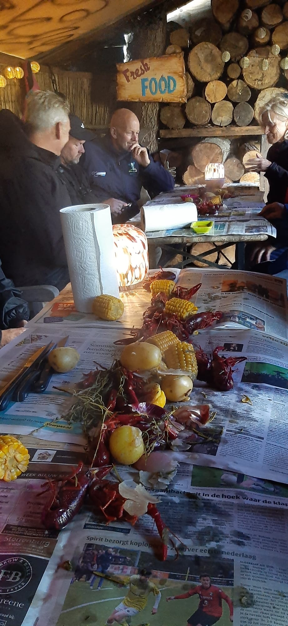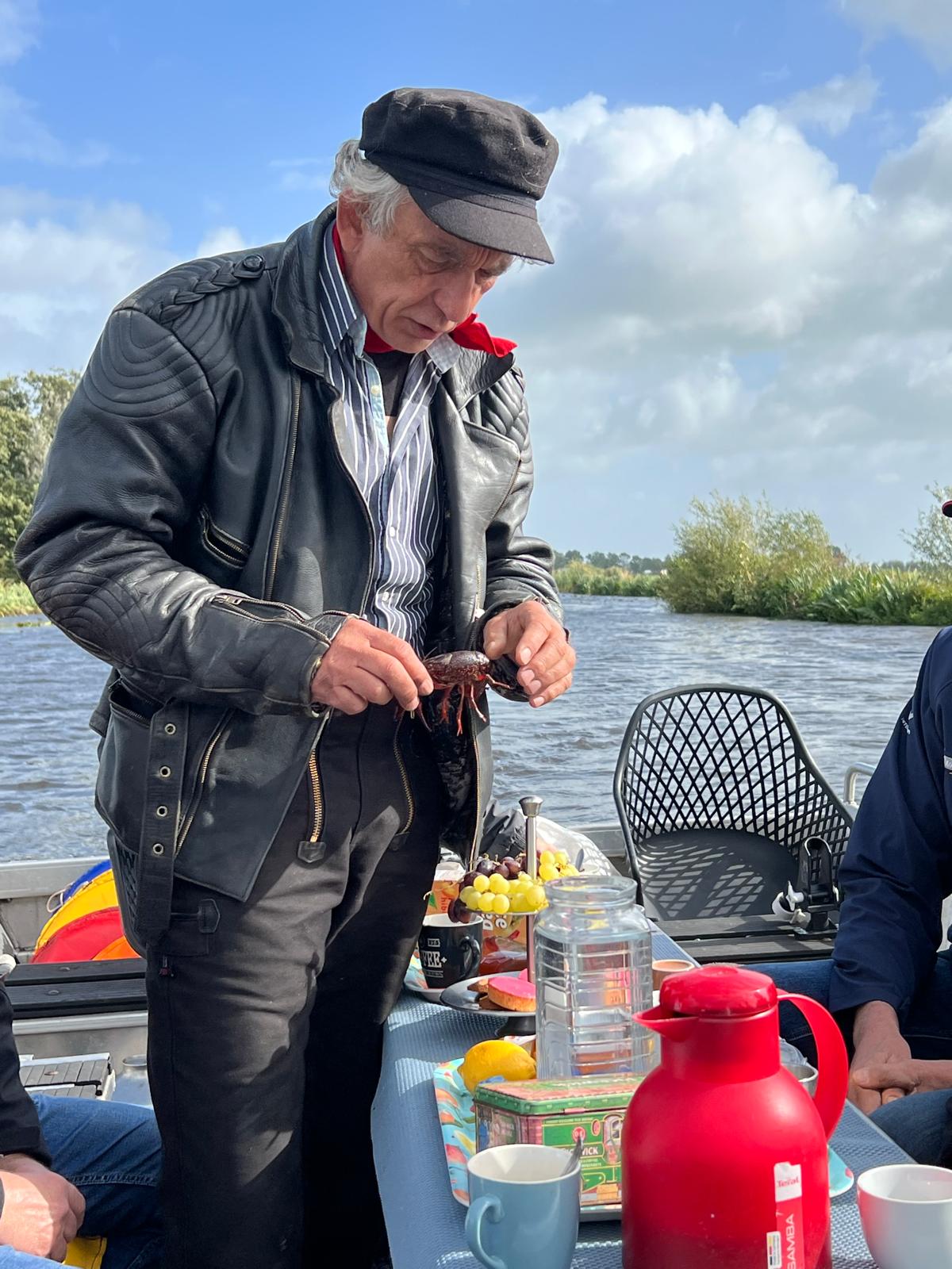 Aan boord een overvloed aan eten en drinken. Tussen het happen door werd kennis en ervaring gedeeld op de platbodem, die versierd was met bonte kussentjes en bloemen. Op ‘Stollywood eiland’ ging de BBQ aan en was er een kreeftenbuffet, een knipoog naar de Amerikaanse rivierkreeft. ,,De sushi van de polder’’, aldus de schipper.
