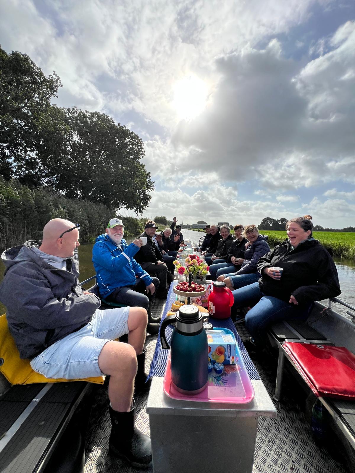 Schipper Tino van Atten (Stollywood) verhaalde ook de laatste en derde dag op de boot met veel enthousiasme en zelfspot over ‘zijn’ gebied. ,,Leuk dat jullie er zijn, dan haal ik het einde van de maand weer. ‘’ Atten zijn eenmansbedrijf is ontstaan vanuit passie voor de polder, die hij graag met anderen wil delen. Het echte buitengevoel…..